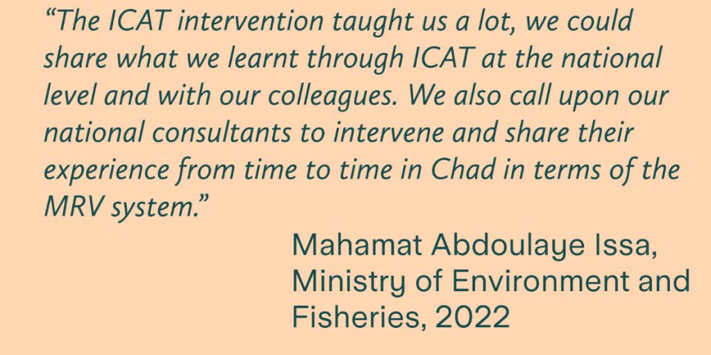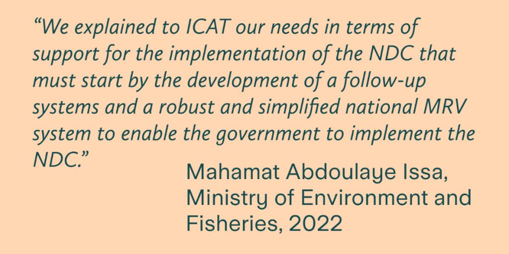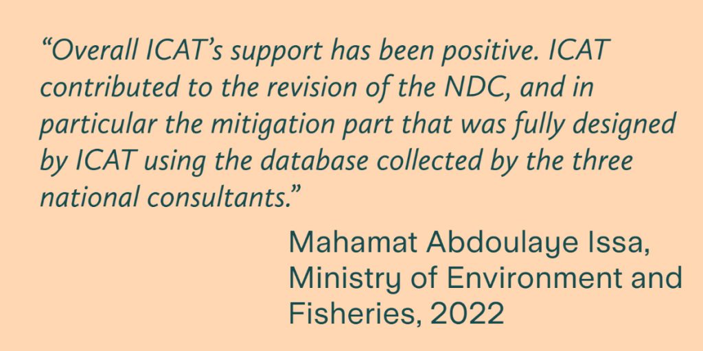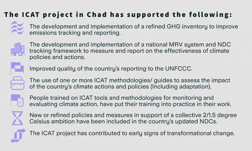 In Chad, ICAT support was provided for the development of the national MRV system and improved monitoring of the NDC.