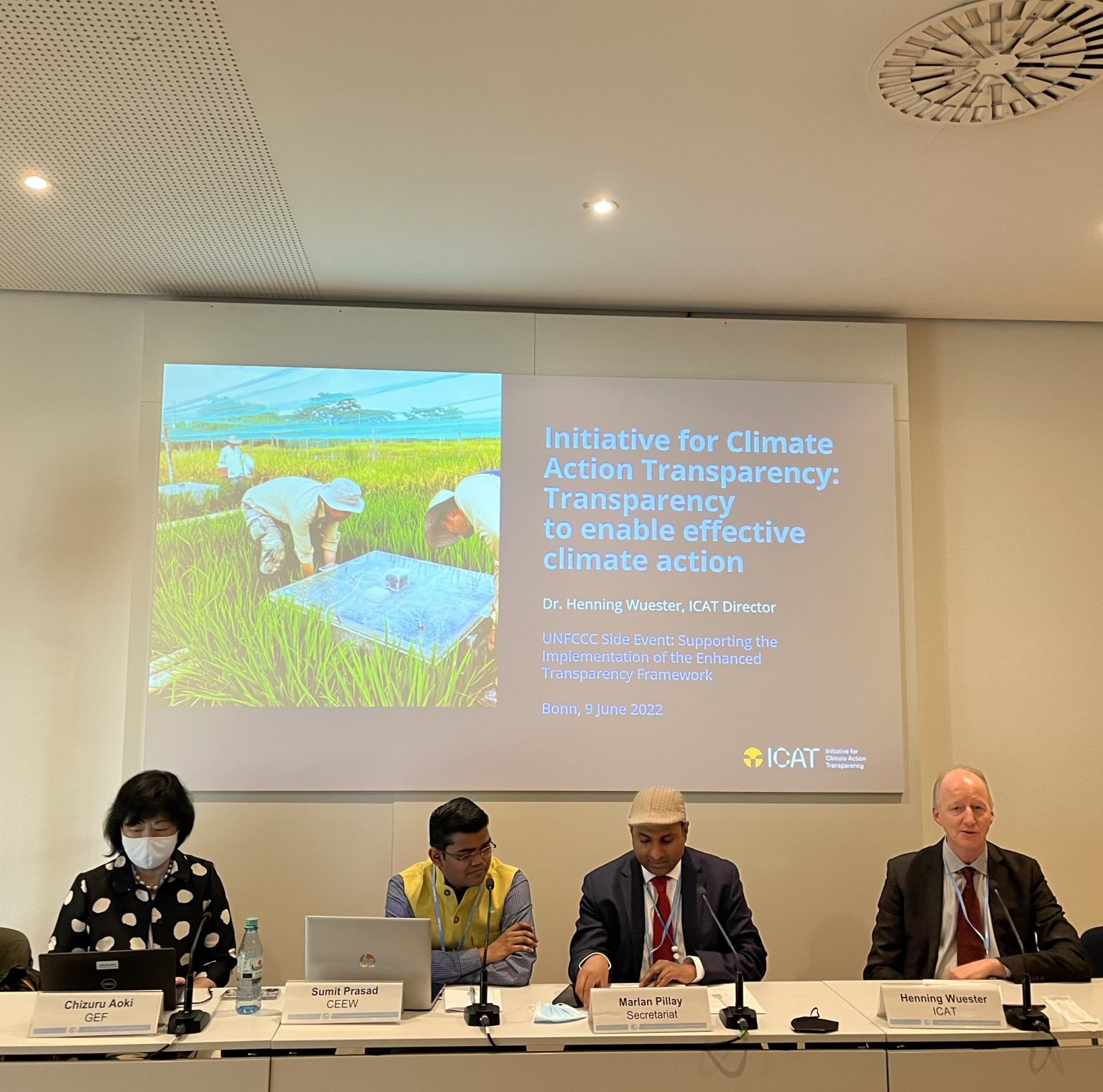 ICAT actively participated in the UNFCCC SB 56 Conference, held in Bonn, 6-16 June 2022, which provided the first opportunity for countries and organizations to meet since the adoption of the Glasgow Climate Pact at COP26 last year. In this new phase of cooperation, partner countries showed strong interest in support for the implementation of their NDCs through reliable data and information. This included advancing in parallel both climate action and sustainable development through evidence-based policy-making; and building national ownership and accountability to achieve development priorities and enable transformational change. The latter was particularly highlighted during the ICAT side event.