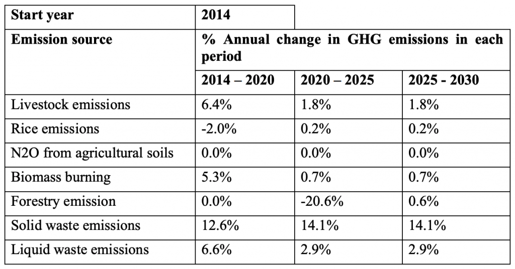 Above: Table showing a business as usual scenario in Viet Nam over three time periods